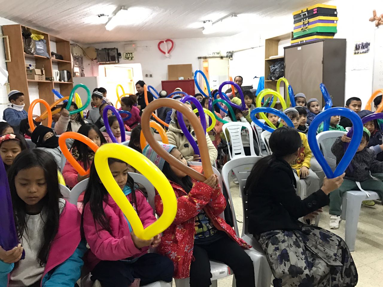 The younger set got together in Kiryat Arba for Hanukah party including balloons and snacks (sufganiot – traditional Hanukah donuts – we assume, although they’re off camera). Still those heavy winter coats indicate it was a bit chilly in the Jerusalem hills.