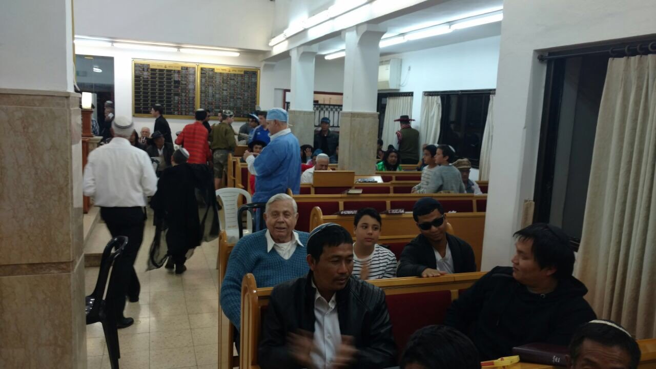 It wasn’t all about the costumes, of course. There was also a megillah to be read. Here are a few shots of the Bnei Menashe in Israel in synagogue: