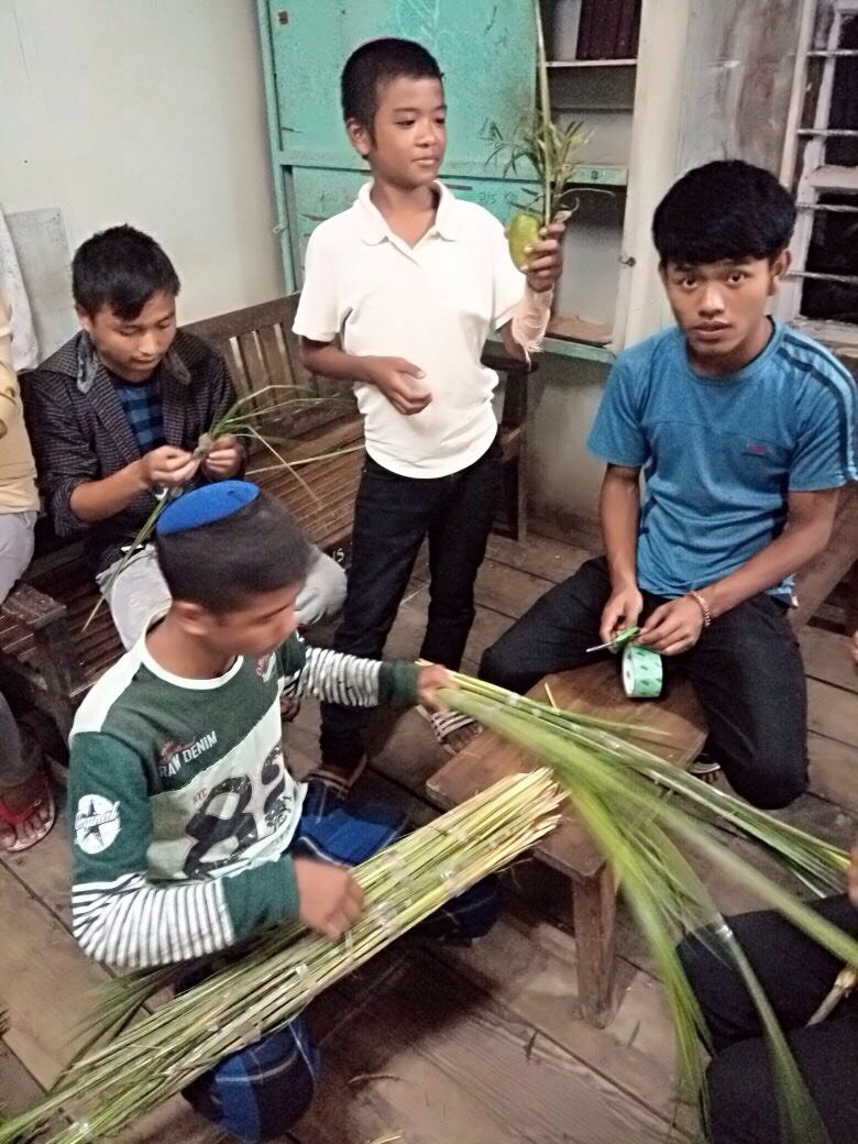 Bnei Menashe youngsters prepare their lulavs and etrogs for the holiday