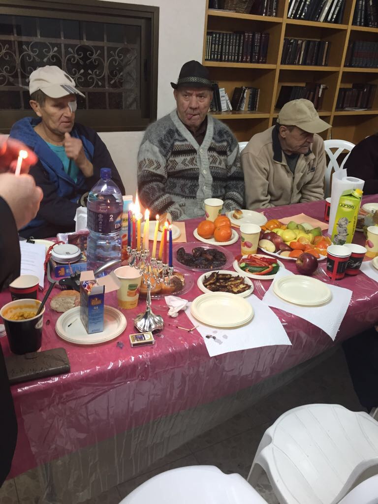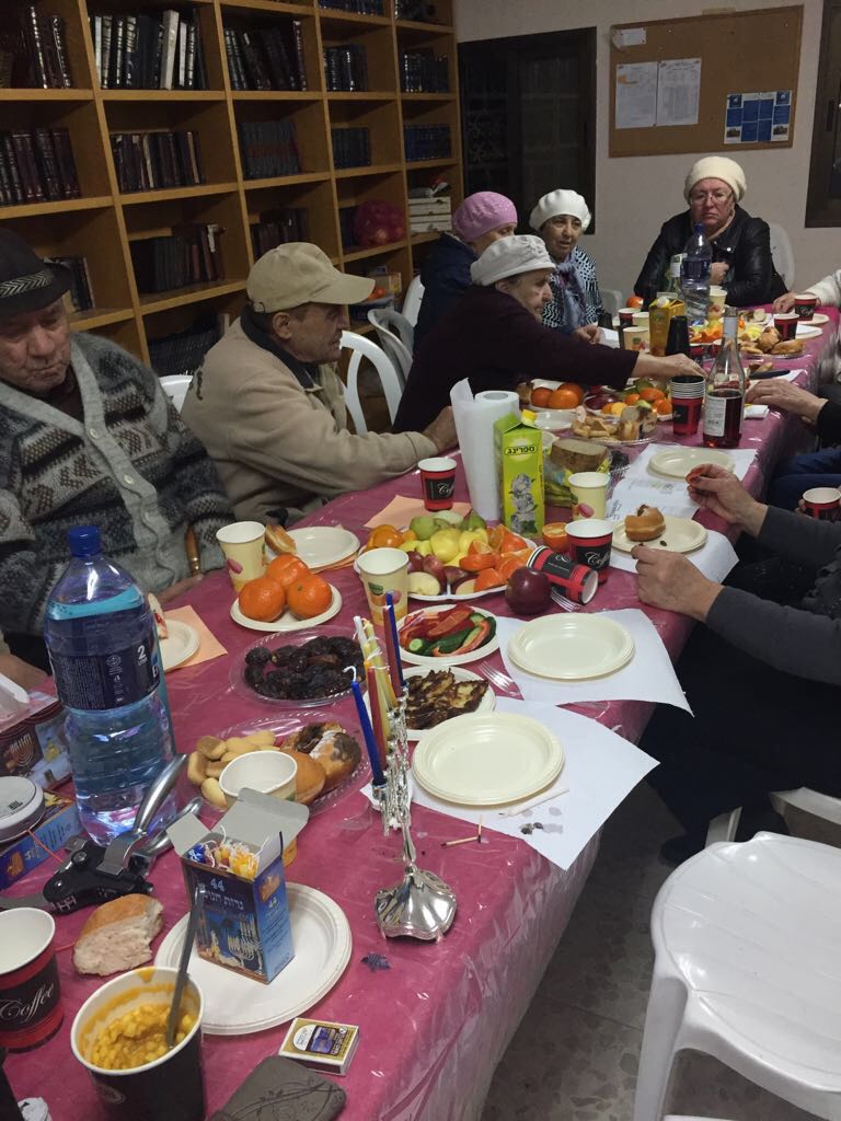 The parties always include listening to Jewish music, eating traditional foods and studying with Rabbi Shlomi Zelig Avrasin and this time was no exception. In the pictures you can see the community learning the laws around lighting Chanukah candles so that during the holiday they could perform the mitzvah of pirsumei nisa – the obligation to publicly commemorate the miracle of Chanukah.