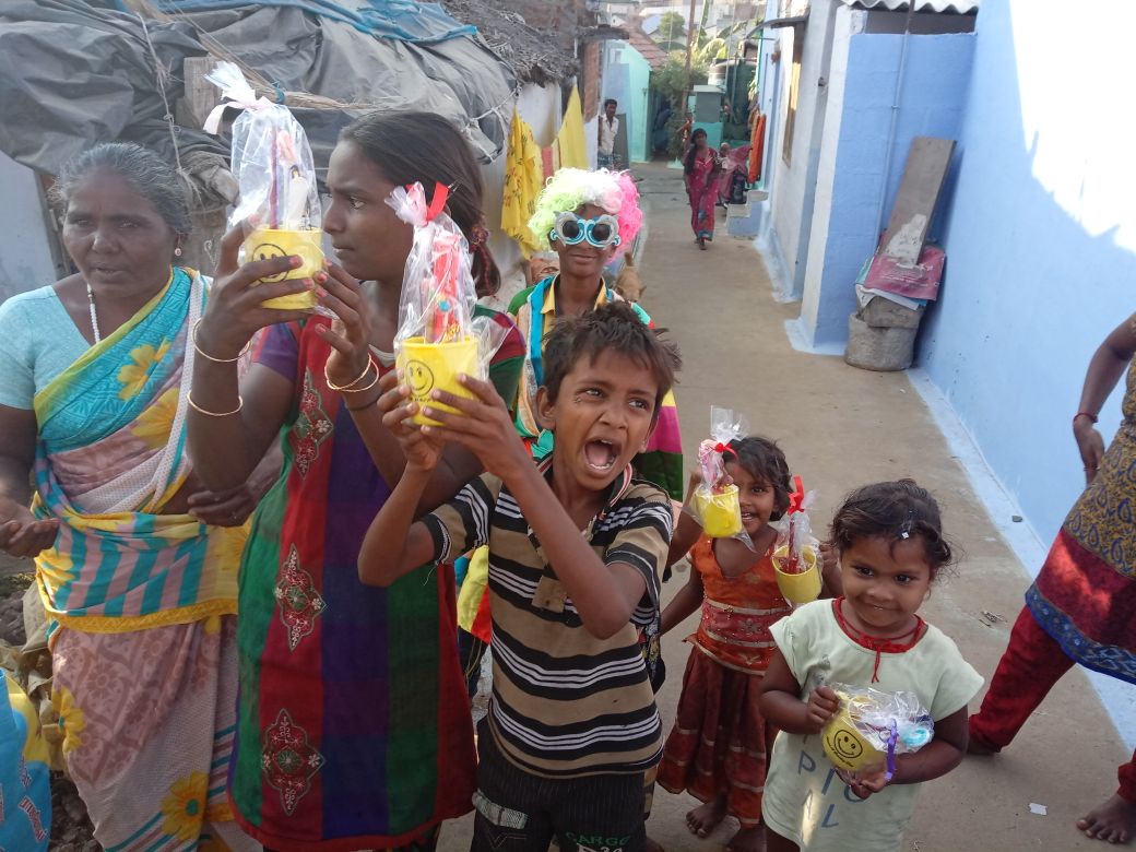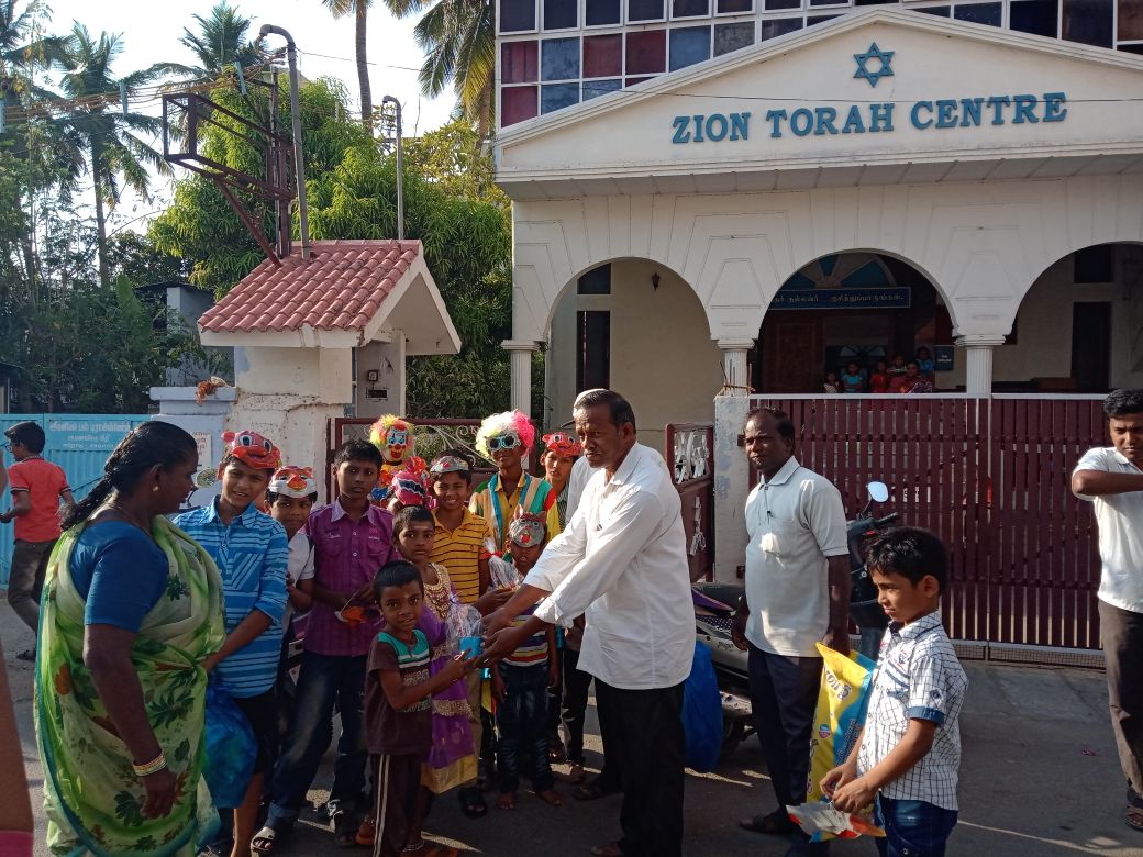 The Zion Torah Center community in Erode, India, was a hub of activity and excitement this Purim! Anna, wife of community leader Samuel Devashayim had this to say: “This was really amazing. Meeting so many children in our street and giving them mishloach manot (Purim baskets) and gifts. You can see the simcha (happiness) on their faces. May HaShem give shalom and simcha into their families!”