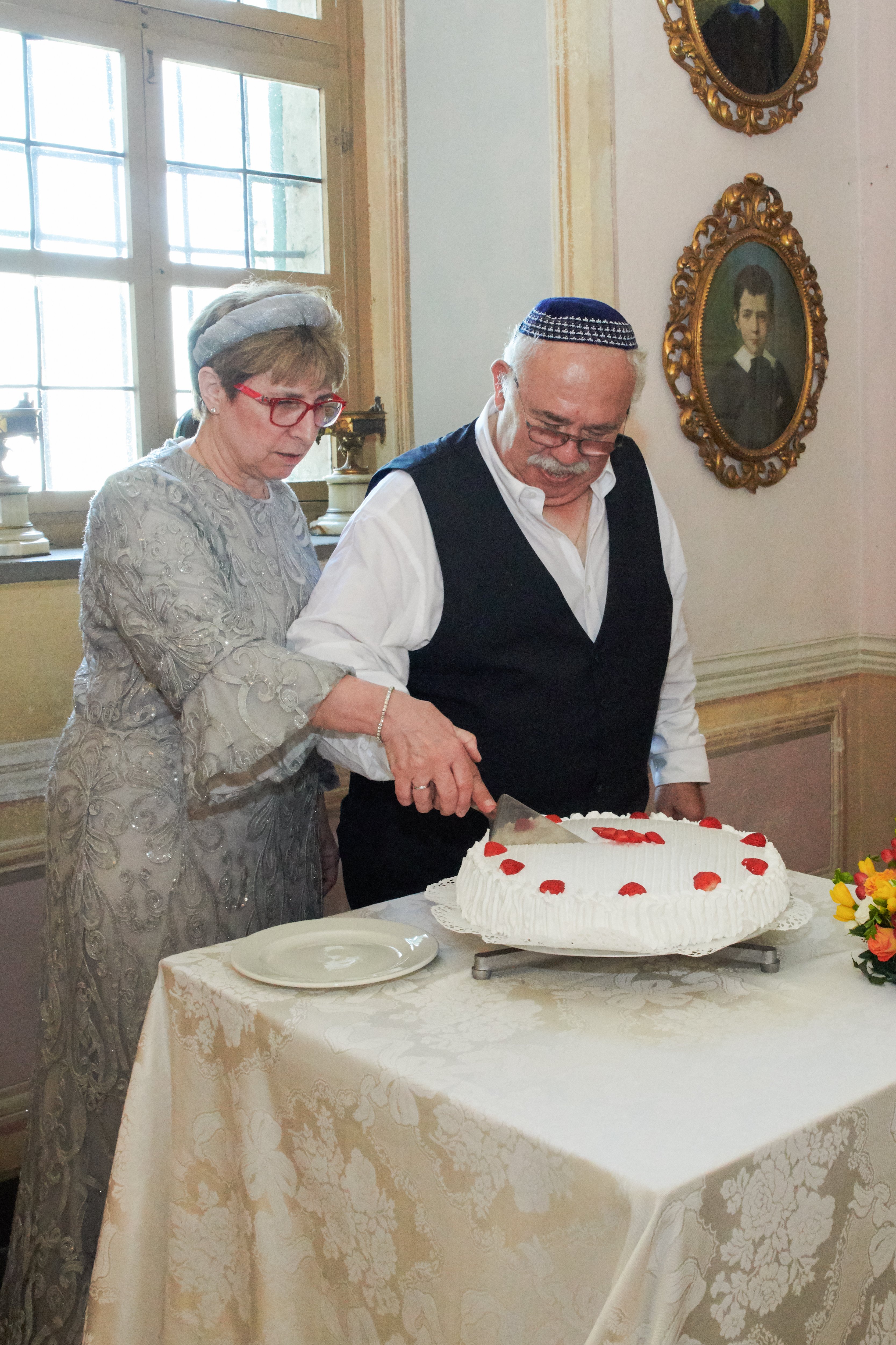 Alberto and Angela, despite being Israeli citizens, decided to get married in the Piazzo synagogue considering the special ties between the Calo family and the community of Biella. Years ago, Alberto Calo celebrated his bar mitzvah in the Piazzo synagogue, where his grandfather, Rabbi Gustavo Calo used to be the official Rabbi.