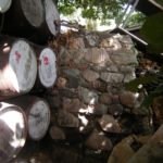 A recent survey of the site described by Professor Barka was conduced by myself and my wife in May 2010. We found the site in great disrepair. The four walls of the brick building still exist as does a small stone wall abutting the southwest wall. In his report Dr Barka writes “there is nothing inherent about the building itself to prove its former function as a synagogue” Our recent survey revealed the existence of one flat object located approximately two-thirds from the bottom of the right doorpost of the only entrance to the structure in the southwest wall. The object is either wood or stone and is oriented vertically as opposed to the stones composing the wall. Directly above the vertical stone is a hole in the wall. See pictures on next page.