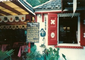In 1982 a sign proclaiming that “this building was built from local cedars in the early 1800s on the site of a 300 year old Jewish synagogue” was evident at the site of the West Indian Tavern (currently the Guavaberry Emporium). Mordechai Arbell in his book “The Jewish Nation of the Caribbean” and repeated in a recent personal emails has written – “I have visited St Maarten. and was in a large coffee shop, at the end of the shopping street. The shop owner who knew about my research moved several planks from the floor and I saw remnants of a building, and bases of two to three columns“. The West Indian Tavern (Guavaberry Emporium) is located at the end of a shopping street (Front Street in Phillipsburg) and from what I and my wife can remember from our first trip in 1982 this tavern could have been considered a coffee shop. It is very likely that Arbell was at the West Indian Tavern when he was shown the remains of the missing St Maarten “Synagogue”.