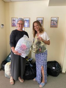 - Tamara Okun with Laura Ben-David of Shavei Israel, delivering clothing