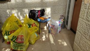 Other people got in on the action as well. Tamara Okun, also of Gush Etzion, organized hundreds of gently-used clothing items, sorted them by size and delivered them for distribution to those same children.