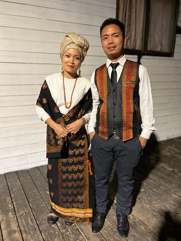 Usually the Bnei Menashe women at these ceremonies opt to wear one of the many beautiful wedding gowns we procure for them, dressing in the ‘Western’ manner that much of the world is accustomed to. However, this time, all six couples, both the men, and the women, chose to wear the traditional costume of the Bnei Menashe. The Bnei Menashe, while they dress in typical western fashion, also have numerous articles of their own design and making, particularly fabrics that they make. Skirts, vests and other garments are made of these special fabrics, each with one of more than 50 unique patterns, symbolic to a different family or ‘tribe’.