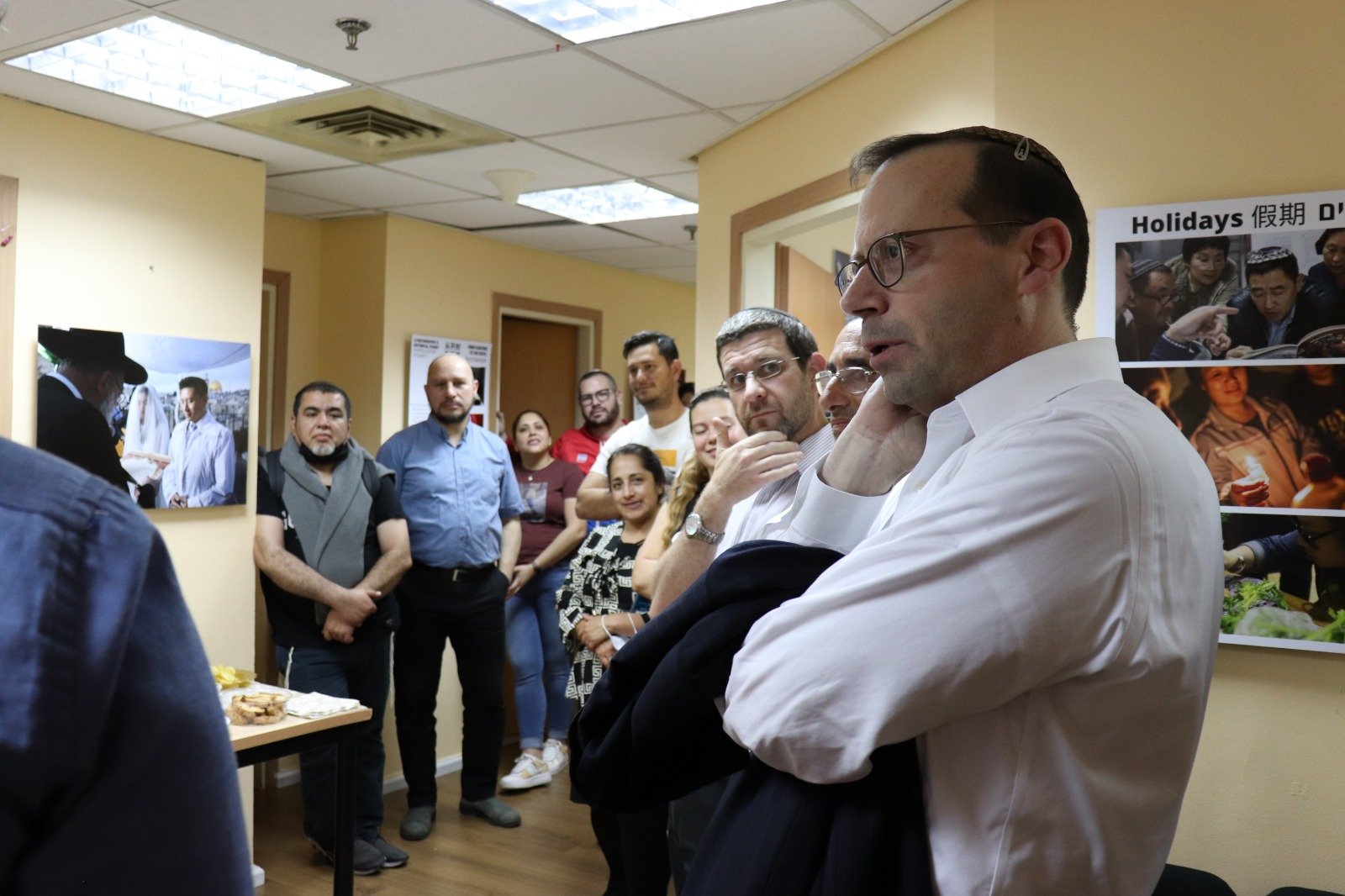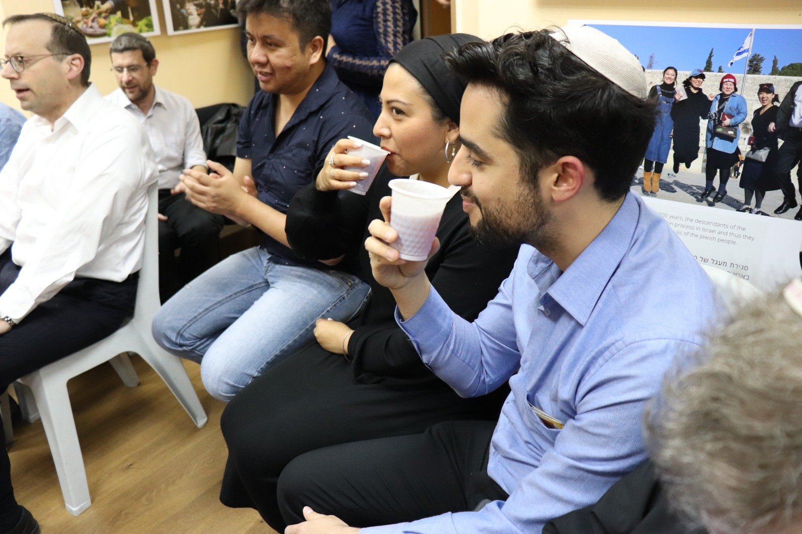 Following this tradition, the staff at Shavei Israel feted our beloved newlyweds, Chaya and Eliav, on the very last day of their ‘Sheva Brachot’ along with Shavei Chairman Michael Freund, teachers at the Spanish language Machon Miriam conversion program Rav Natan Menashe and Rav Yechiel Chilewsky, plus Machon Miriam students, close friends and family of the new couple.
