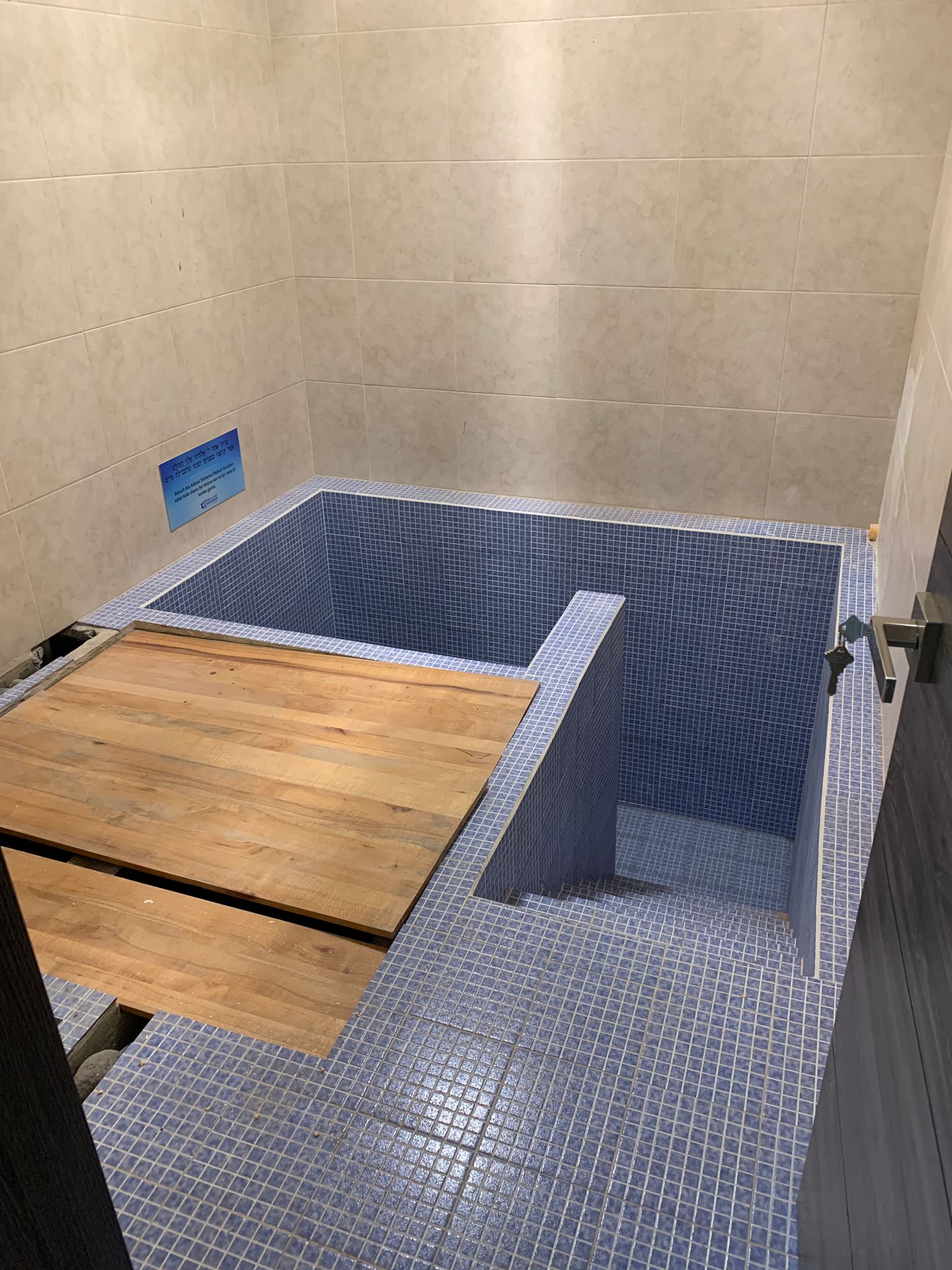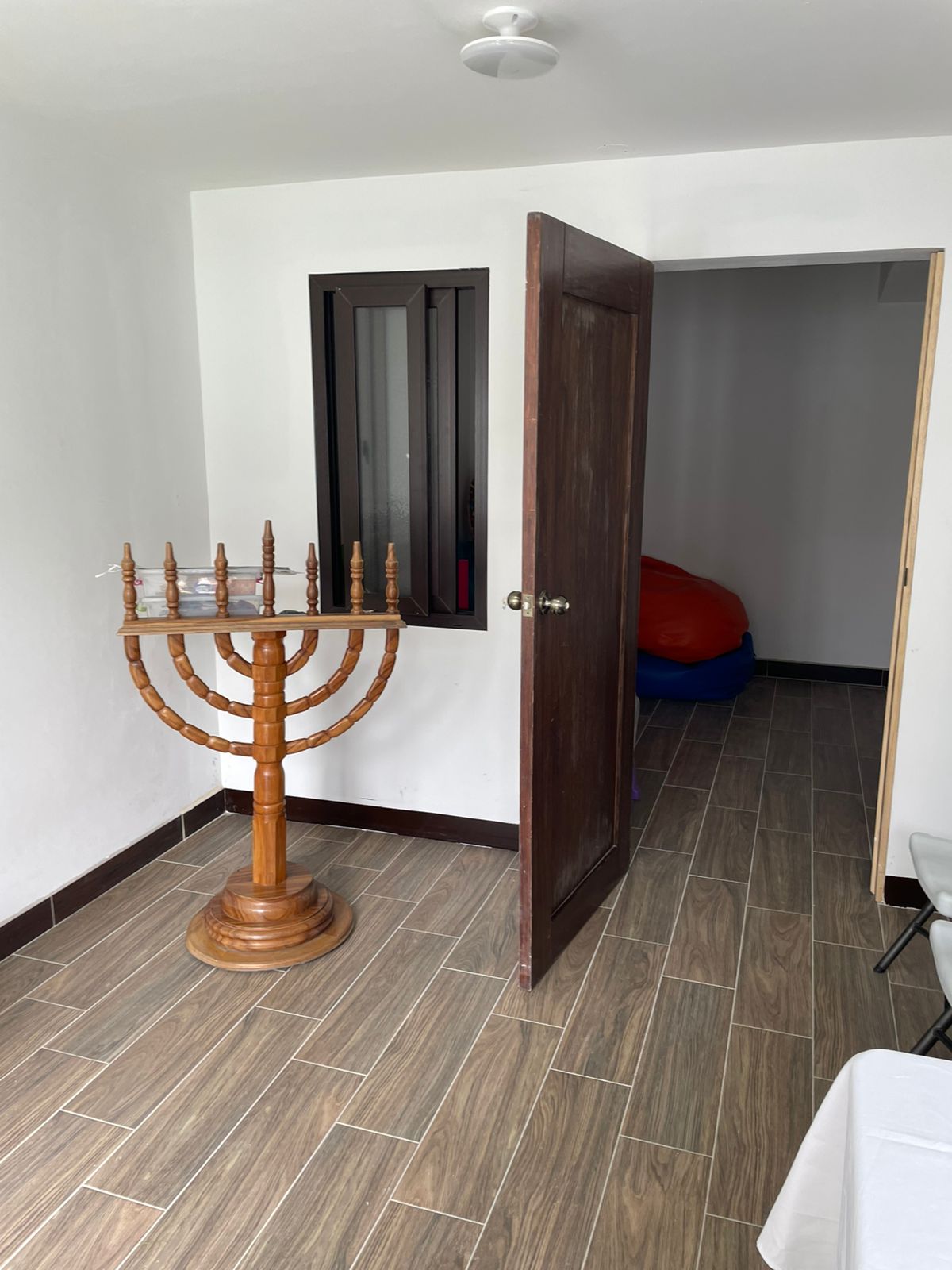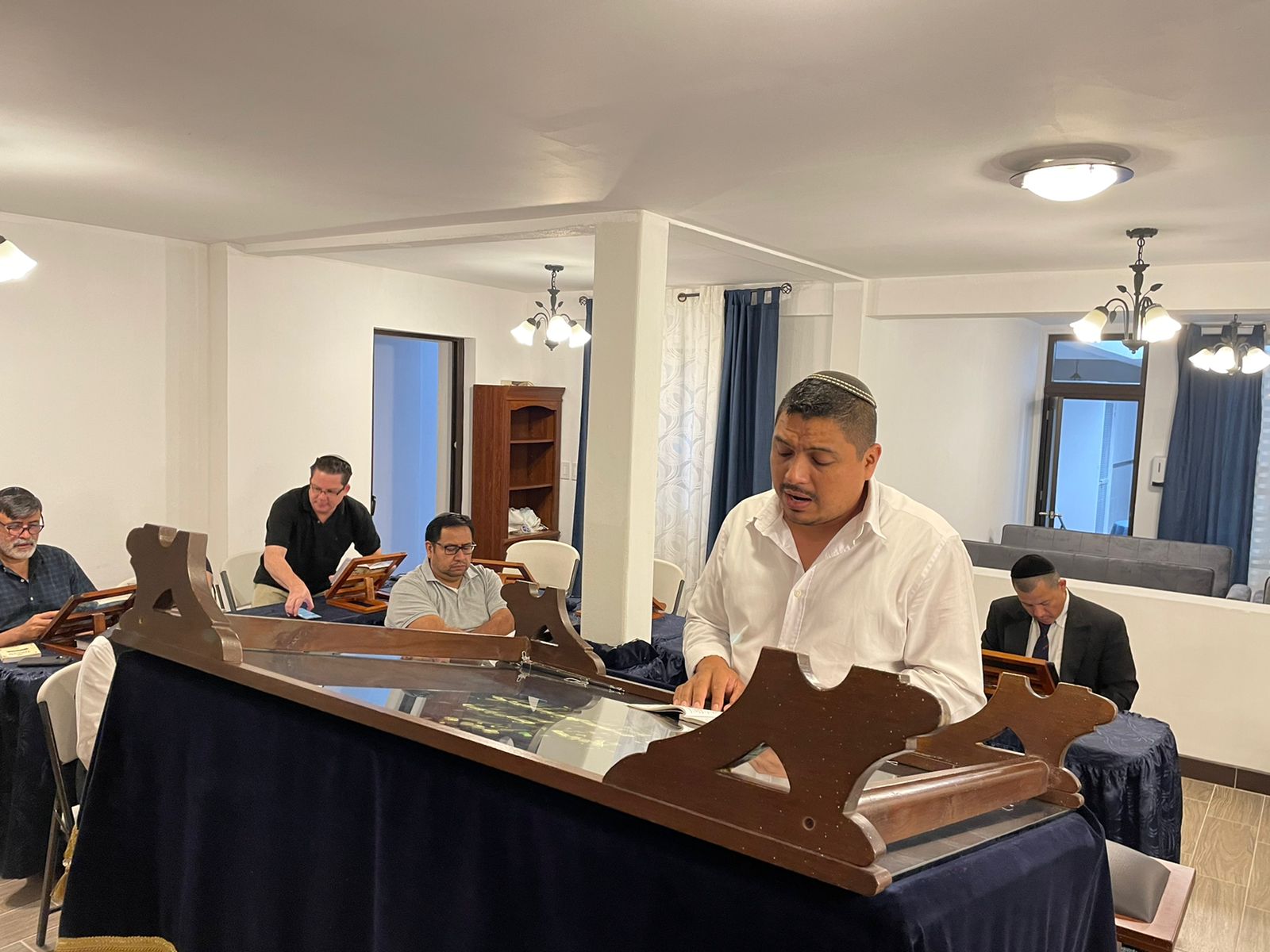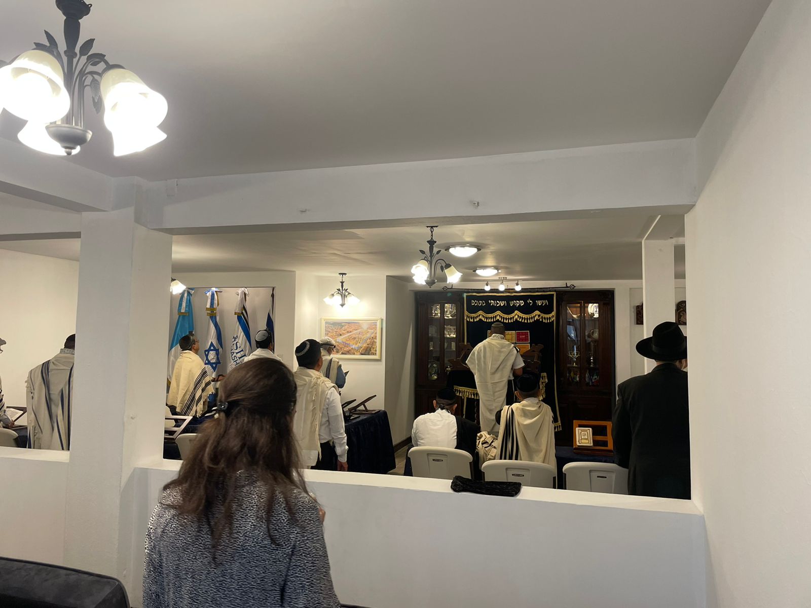 “This center was recently renovated and expanded to accommodate the community’s observance of Shabbat and Mitzvot. The focal point of the center is its beautiful Beit Knesset, which includes an Aron Hakodesh (Ark) replete with many meaningful symbols; one of them being a menorah reminiscent of a menorah found on a religious institution belonging to Bnei Anusim in Antigua, Guatemala and a beautiful Aron Hakodesh (Ark) covering from Israel. The center has rooms for each of the 15 families, rooms for the children’s shabbat classes, modern mikveh, kosher kitchen, rooftop area for a sukkah, and a large eating area for shabbat and yom tov meals. The center allows community members who live as far as 45 km (28 miles) away from their synagogue be able to come and spend shabbat together, as driving is prohibited on Shabbat by Jewish law.
