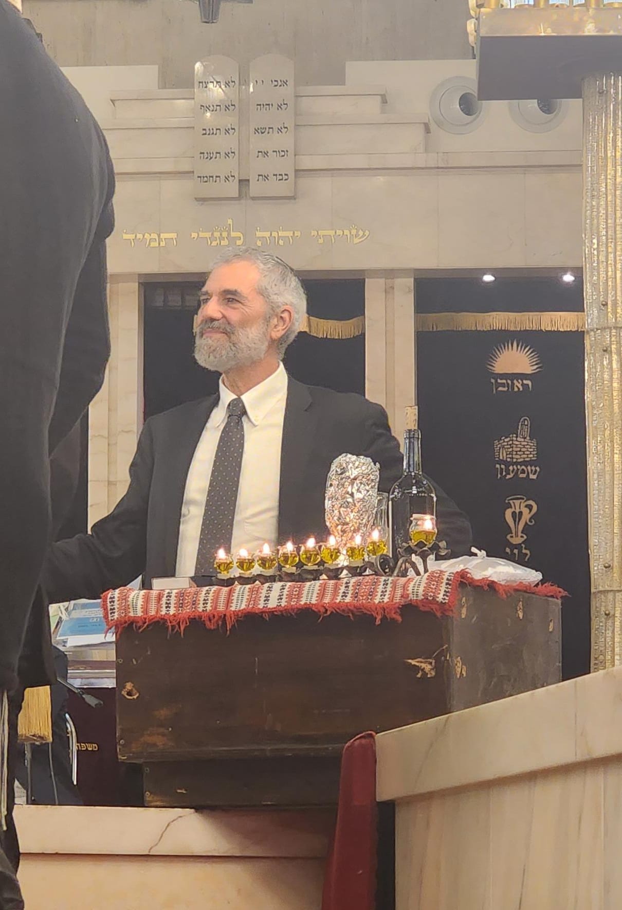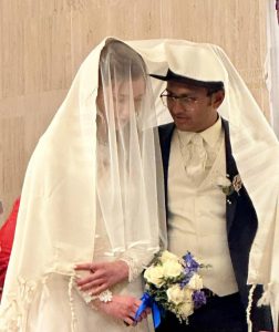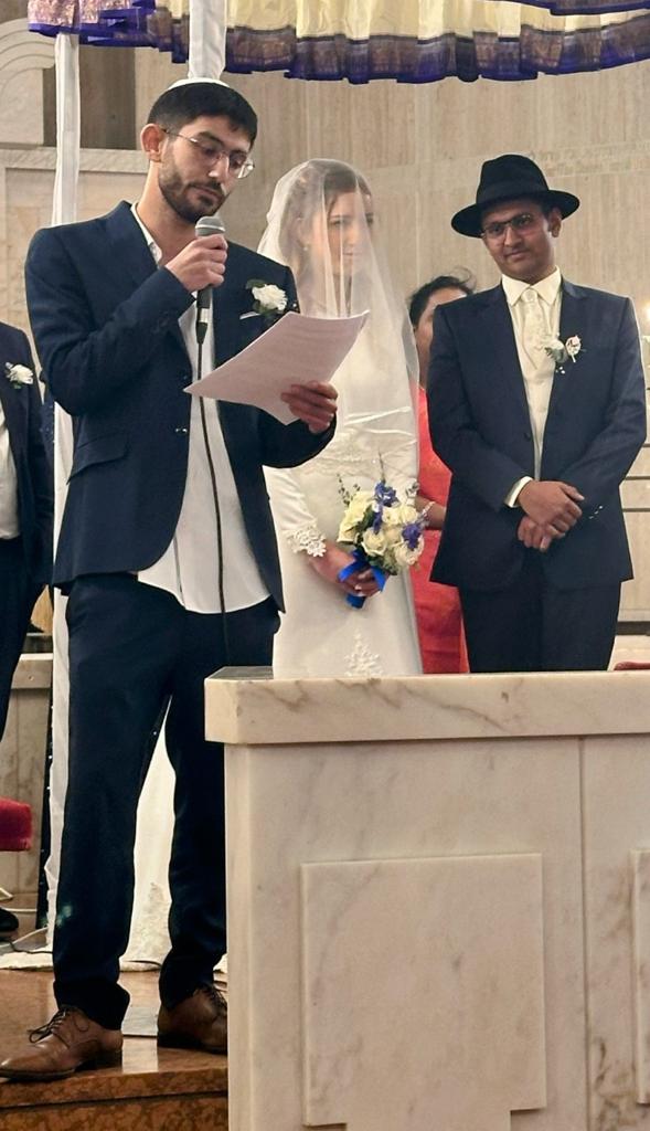 Our dear Rabbi Reuven Tradburks, director of Machon Milton was honored to light the candles of Chanukah before the chupah and said the first blessing for the Chatan (groom) and Kallah (bride).