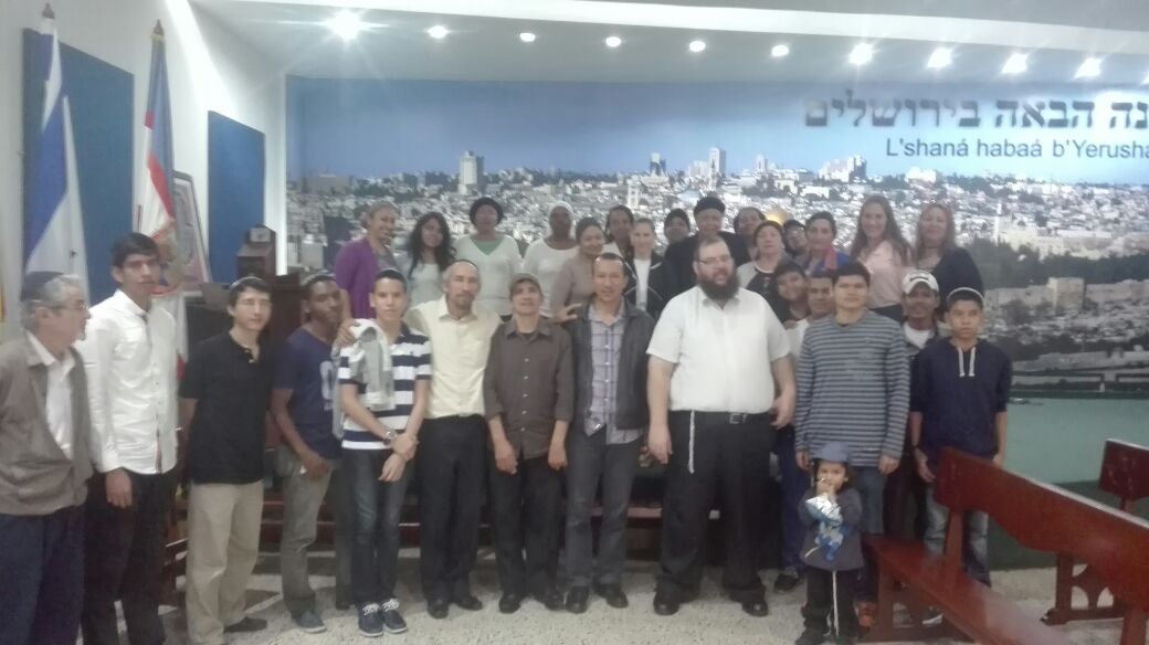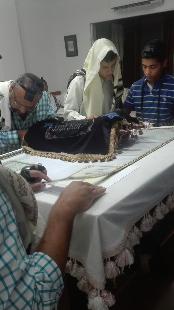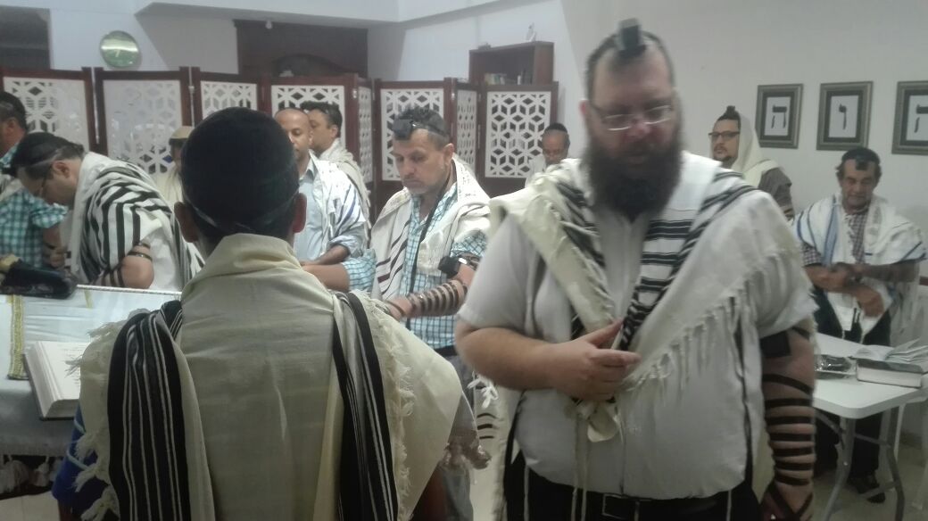 Tenemos fotos de la mikve, así como de miembros de la comunidad rezando el servicio matutino de shajarit, seguido por un desayuno festivo.