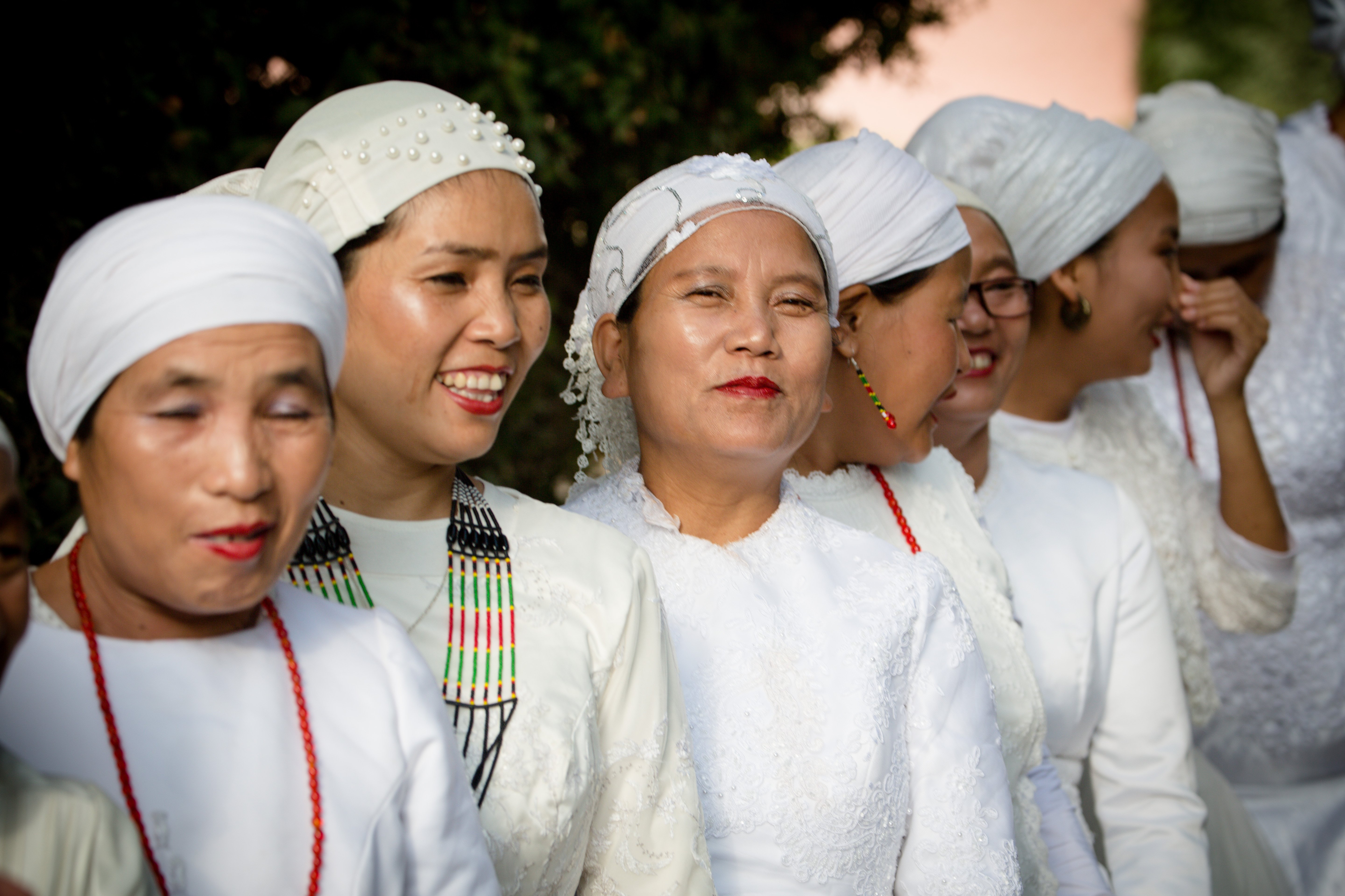 Durante las bodas, a las novias se les peinaba y maquillaban, y vestían trajes de boda blancos tradicionales, mientras que algunos de los novios usaban trajes tradicionales con diseños tribales de Bnei Menashe.
