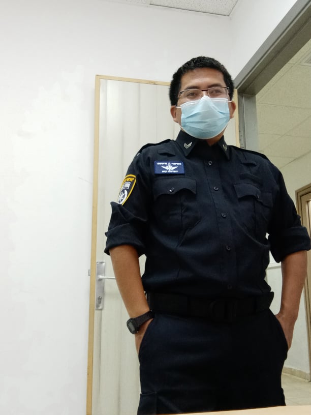 Shlomo aplicó, tuvo un par de entrevistas y fue aceptado. Hizo un curso para policías voluntarios en la comisaría de policía de Nof Hagalil y está orgulloso de ser, que él sepa, el único voluntario de policía de Bnei Menashe en Israel.