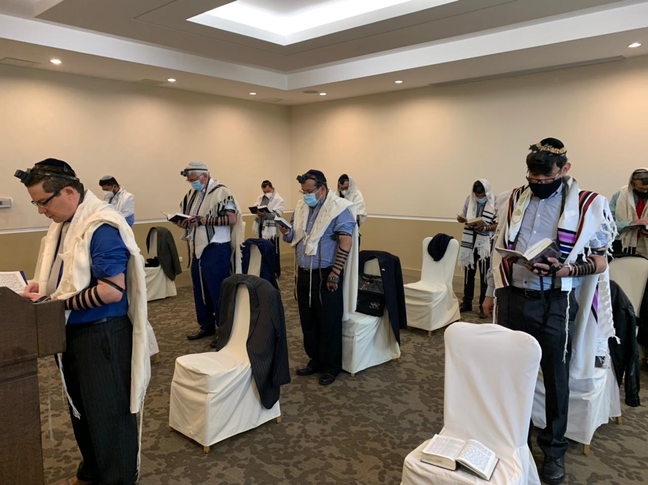 Rezaron Shajarit (oraciones matutinas) con todos nosotros antes del brit milá. Fue un gran sentimiento, todos los hermanos orando juntos en armonía.