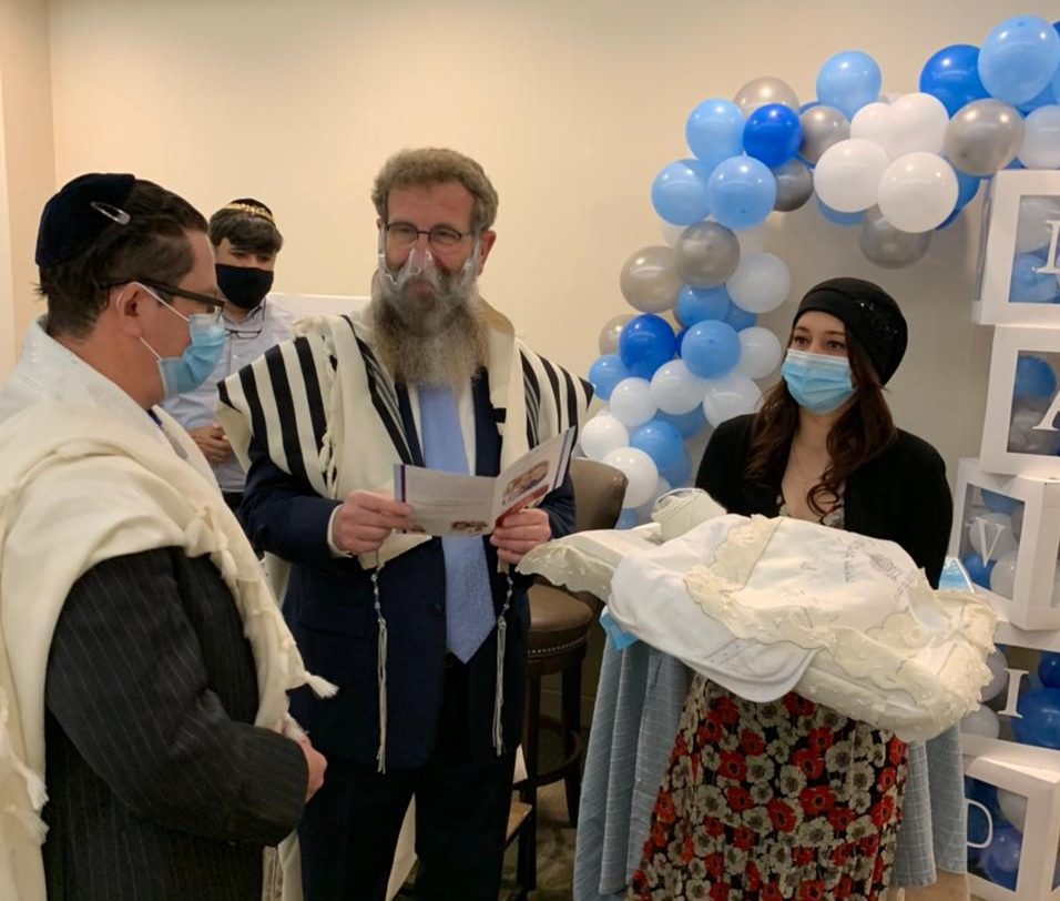 Han ocurrido algunos milagros, uno de ellos es la gran relación que tenemos con la comunidad judía local tradicional. El Rabino Russek, rabino de la comunidad local, que también es un mohel, le realizó el brit milá a David y nuestro querido Rabino Eliahu Birnbaum tuvo el honor de ser el Sandak (el padrino del pequeño). Se invitó a varios miembros de la comunidad tradicional.