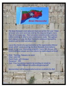 La presentación brindó antecedentes sobre la tribu judía perdida de Bnei Menashe y luego llevó a los espectadores a un viaje multimedia siguiendo a los Bnei Menashe desde sus aldeas remotas en el noreste de la India, donde han vivido durante cientos de años, y a través de las luchas que se han hecho para traerlos en aliyá a Israel.