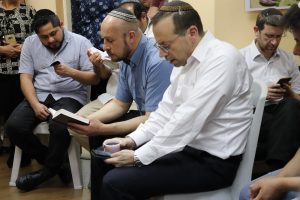 Siguiendo esta tradición, el personal de Shavei Israel agasajó a nuestros amados recién casados, Chaya y Eliav, en el último día de su ‘Sheva Berajot’ junto con el presidente de Shavei, Michael Freund, los maestros del programa de conversión de idioma español Machon Miriam Rav Natan Menashe y Rav Yechiel Chilewsky, además de los estudiantes de Machon Miriam, amigos cercanos y familiares de la nueva pareja.