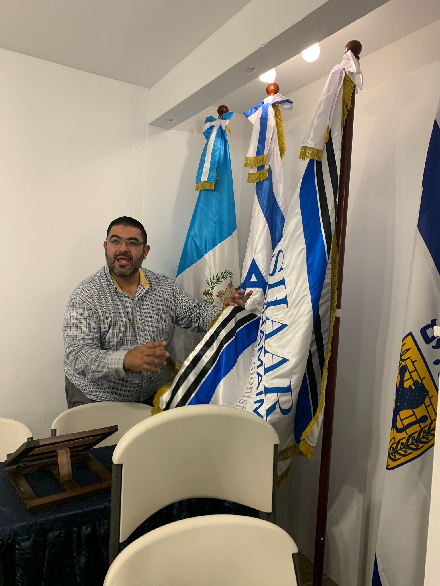 “Cuando mi amiga Chaya Castillo Riera, que trabaja para Shavei Israel, escuchó que Ariella y yo viajábamos por Guatemala, me presentó a Abraham Shlomo (Fernando) Flores Castañeda, quien se desempeña como presidente de la comunidad. Abraham amablemente nos invitó a unirnos a su comunidad el pasado domingo 28 de agosto para celebrar Janukat Habayit (que literalmente significa inauguración de la casa) de su centro comunitario llamado (Shaar Hashamaim Centro Judío Sionista).