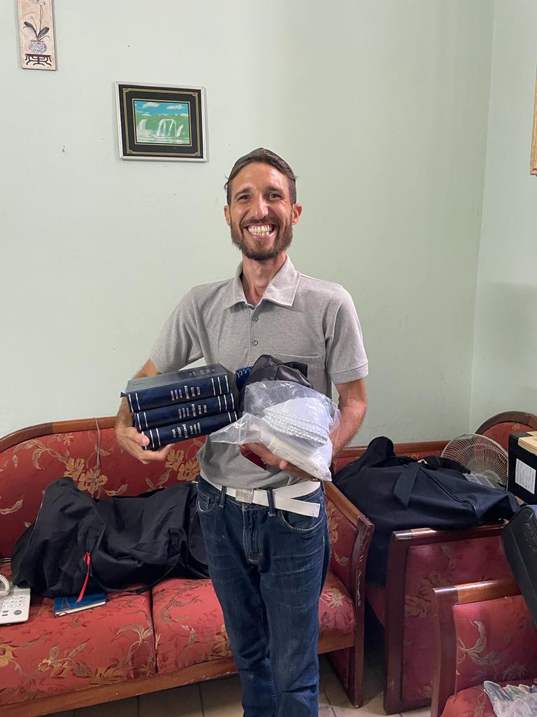 En esta visita Rav David Cordoba consiguió traer a la comunidad Tefilin, Mezuzot, Kipot y talitot que fueron donados por personas altruistas de Miami.