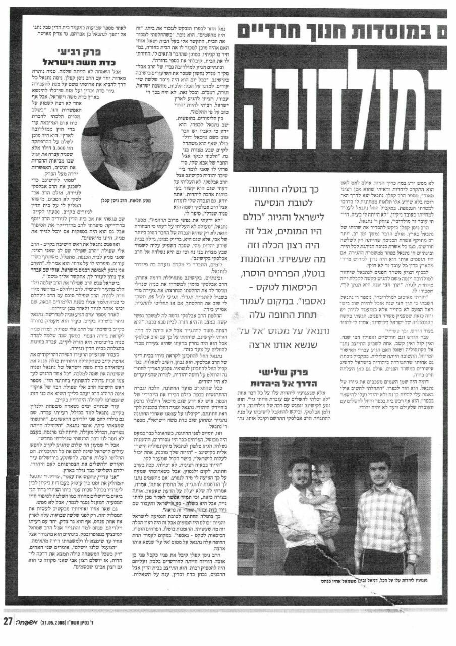 זמן קצר לאחר סיום לימודיו החל ראובן ללמוד בבית ספר מקצועי, כדי להימנע מהגיוס לצבא האוקראיני. שישה חודשים לאחר מכן הוא עזב את בית הספר והצטרף לקרובי משפחתו בארץ ישראל. מאוחר יותר, אחיו הצעירים, דוד ויוסף (בתמונה) הצטרפו אליו לכאן. לאחר הגעתו לארץ הקודש ראובן החל מיד את לימודיו בישיבת "מכון מאיר" בירושלים והכנות אינטנסיביות לגיור. התהליך הושלם לבסוף לאחר שלוש שנים ארוכות של המתנה – לקח לו הרבה זמן לקבל המלצות של רבנים מאודסה שהכירו אותו ואת משפחתו. היום ראובן הוא מדריך במחלקה של מכון מאיר לדוברי רוסית. בישיבה הוא מסייע לתלמידים אחרים בעת ביקור במשרד הפנים והגשת בקשות לאשרה, משתתף בארגון טיולים בארץ ובפעילויות אחרות, וכמובן עוזר להם בלימודי תורה.